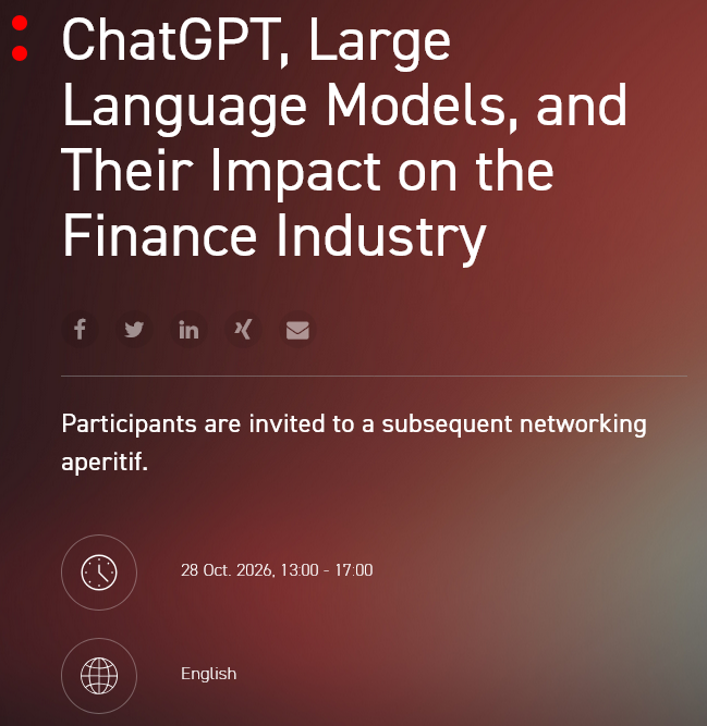 This SFI Master Class will highlight the meaning and potential of new technologies like ChatGPT and examine how they are paving the road towards Large Language Models (LLMs). We will reflect on the main architecture of LLMs and elaborate on the form of "intelligence" and on the form of "language" that we face when working with such technologies. Crucial ideas from Machine Learning (ML), the very foundations of Artificial Intelligence (AI), the world of banking and finance, and modern philosophy will be discussed, providing a deeper understanding of the technologies and their applications, in particular in the financial industry.